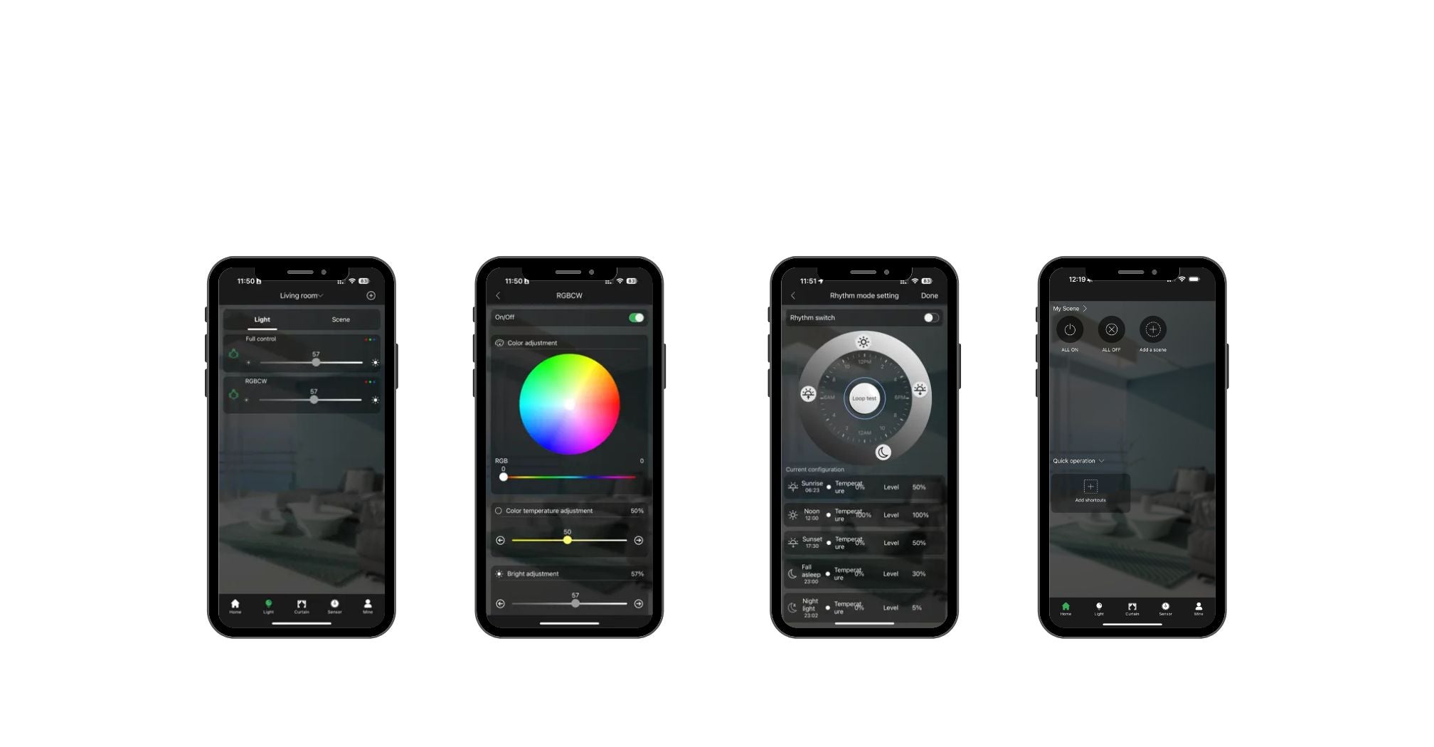 With the sunsetting gradually into nightfall, Indoor light changes from 3000K warm white light to 2200K warm yellow light, brightnessFrom 80% to 10%. Promote the secretion of melatonin and fall asleep faster.